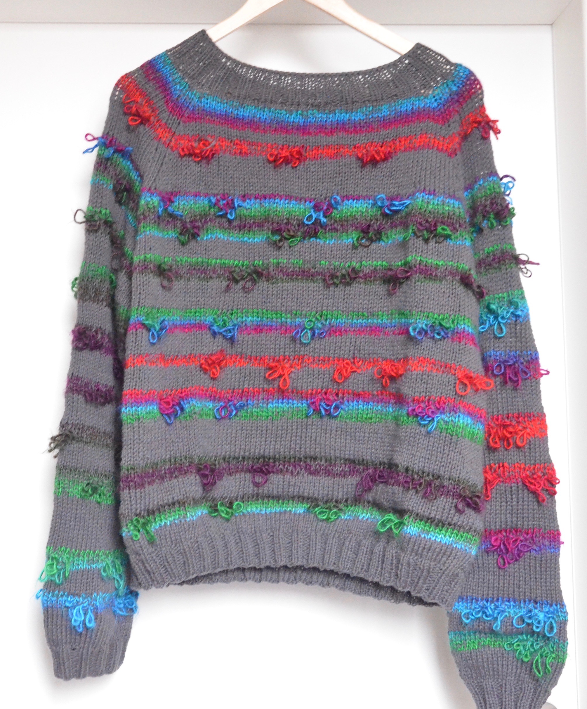 Świetny, kolorowy sweter, pomysł z pętelkami doskonały i pięknie zrobiony raglan, serdecznie pozdrawiam